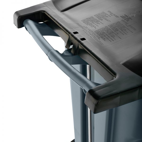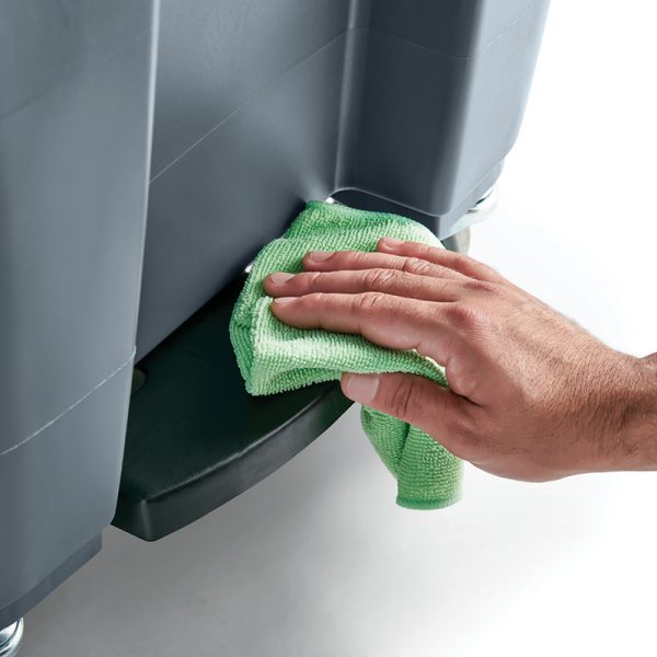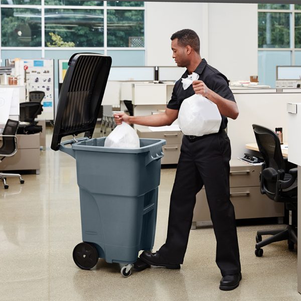 1971968 – Thùng rác chân đạp BRUTE® Step-on Rollout 65Gal củng cố và vận chuyển chất thải cơ sở nặng. Bánh trước xoay phân phối trọng lượng đồng đều cho tính di động và xử lý cao cấp.