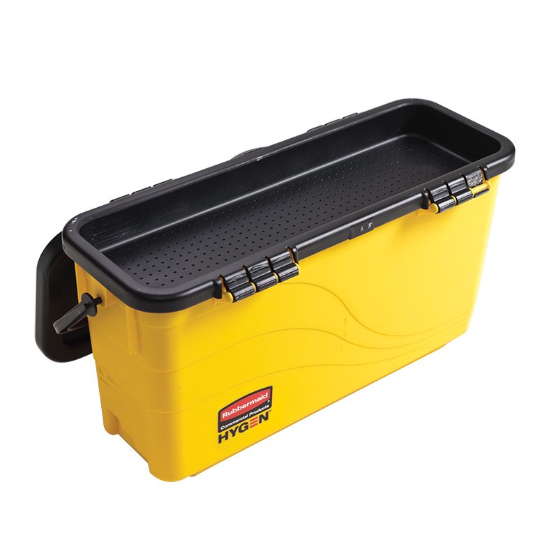 1791802- Thùng nhựa đựng đồ có nắp Rubbermaid HYGEN™ có thiết kế dùng để ép sạch nước cho các loại khăn lau sàn. Thùng được làm bằng chất liệu nhựa, trọng lượng nhẹ, bên trong thùng có thể chứa được 16 khăn lau.