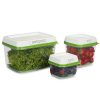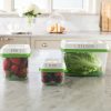 Keep Produce Fresher Longer* with the Rubbermaid FreshWorks 2.5 Cup Produce Saver. Revolutionary FreshVent technology creates an optimal environment for fruits and vegetables by regulating the flow of oxygen and carbon dioxide in and out of the produce container. The CrispTray at the bottom of the food container elevates produce away from moisture and promotes airflow to help prevent spoilage. The built-in lid filter never needs to be replaced and will last a lifetime. Longer lasting produce means fewer trips to the grocery store.